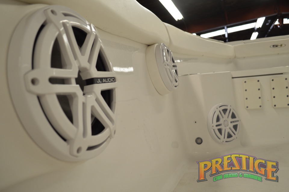 Electrical systems can be overloaded by high-power marine audio systems. This includes the secondary batteries. Prestige Car Audio & Marine understands the charging systems and battery requirements on a boat, and we will never build you a system that will leave you stranded. We look at each and every boat independently, and will design and implement a new system accordingly.