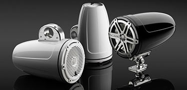 We also install specialty speakers intended for wakeboard or ski towers. These are designed to project the sound well behind the boat so that the skier can hear the music. These also double as great party speakers when anchored around other boats. Their highly efficient design makes them very effective with moderately powered amplifiers, something again which our knowledgeable system designers always consider.